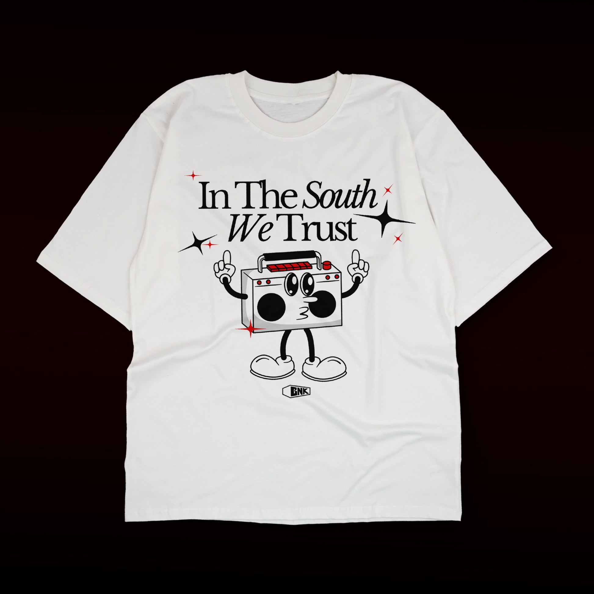 Introducing our new "In the South We Trust" t-shirt, made with 100% USA cotton for superior quality. Featuring a 16 singles yarn count and 3.5% Lycra rib collar, this tee offers a comfortable and true to size fit that's perfect for any occasion. The 7.5 oz heavyweight fabric adds a substantial feel while remaining breathable.